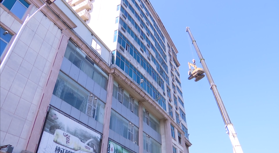 9日,记者来到位于江滨路的临泰大酒店,该路段已经实行全封闭临时交通管制,施工方使用大马力高空升降车,直接把挖掘机等机械设备运上楼顶,等工作人员到来就可以开始进行拆除作业。