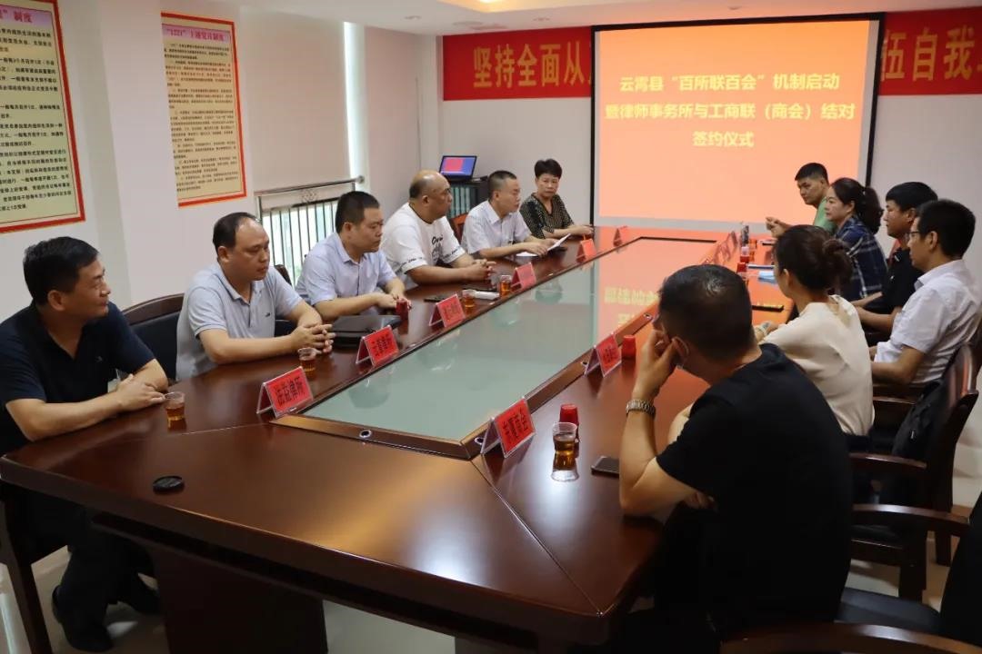 本网讯(谢榕)为进一步深化民营企业法律服务工作,践行“妈妈式”服务,打造法治化营商环境,建立律师事务所与工商联、商会联系合作机制,助推民营经济健康发展,8月11日下午,县司法局与县工商联、福建云章等3家律师事务所共同举办云霄县“百所联百会”机制启动暨律师事务所与工商联(商会)结对签约仪式。县司法局、县工商联等单位领导与律师事务所负责人、工商联所属商会代表参加活动。