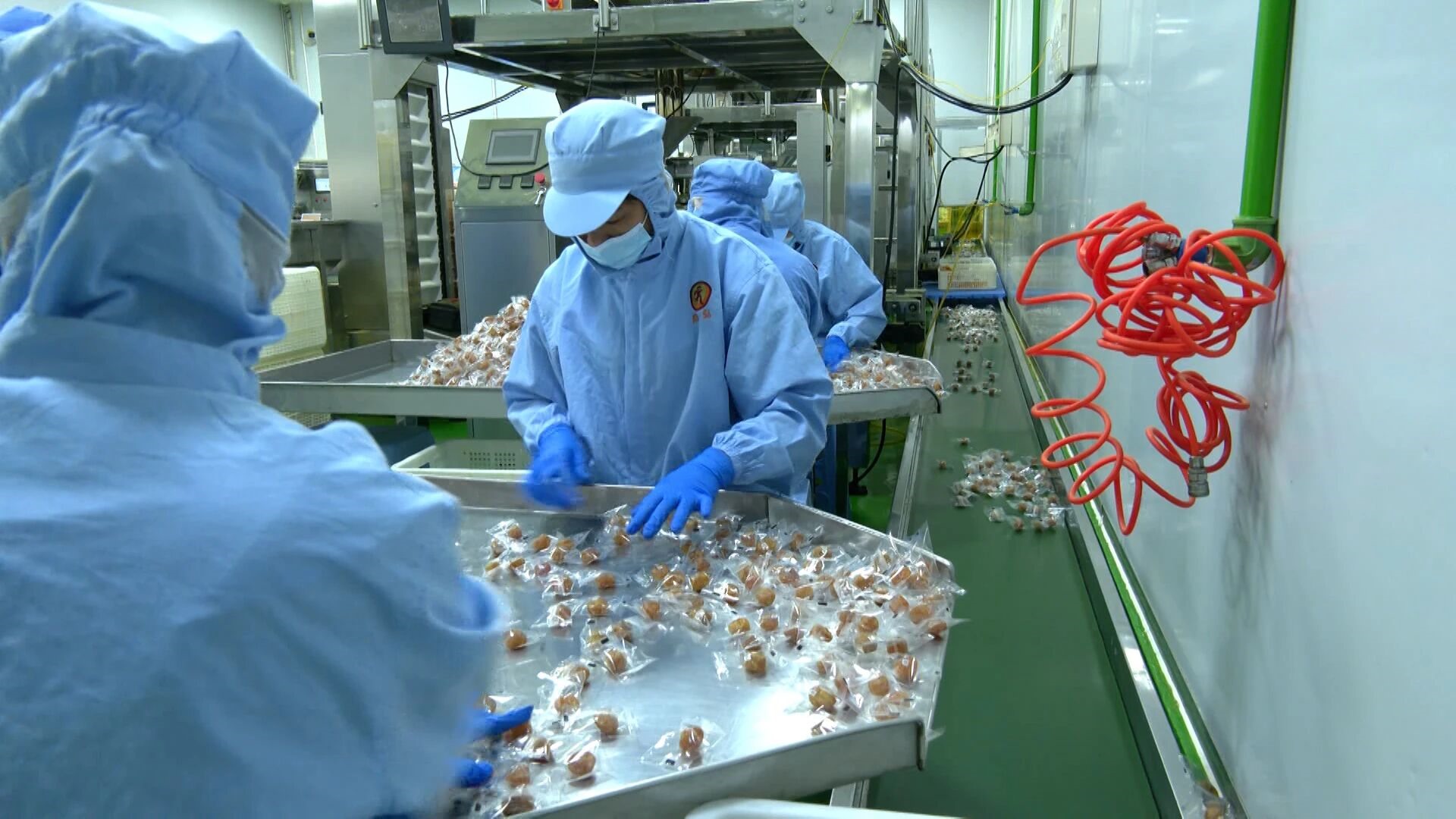 工人正在分拣产品
