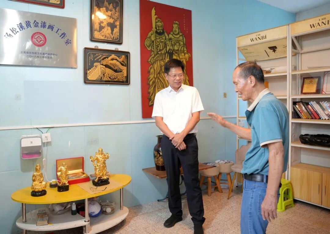 蓝良木先后前往云陵、莆美、陈岱和列屿等处,与非遗传承人面对面探讨交流,详细了解古书画装裱修复、闽南传统民居营造、闽南木雕制作、黄金漆画、肉煎、竹器制作等非遗技艺的历史渊源、传承现状及面临的困难与挑战等,并就持续抓好非遗保护传承工作提出要求。