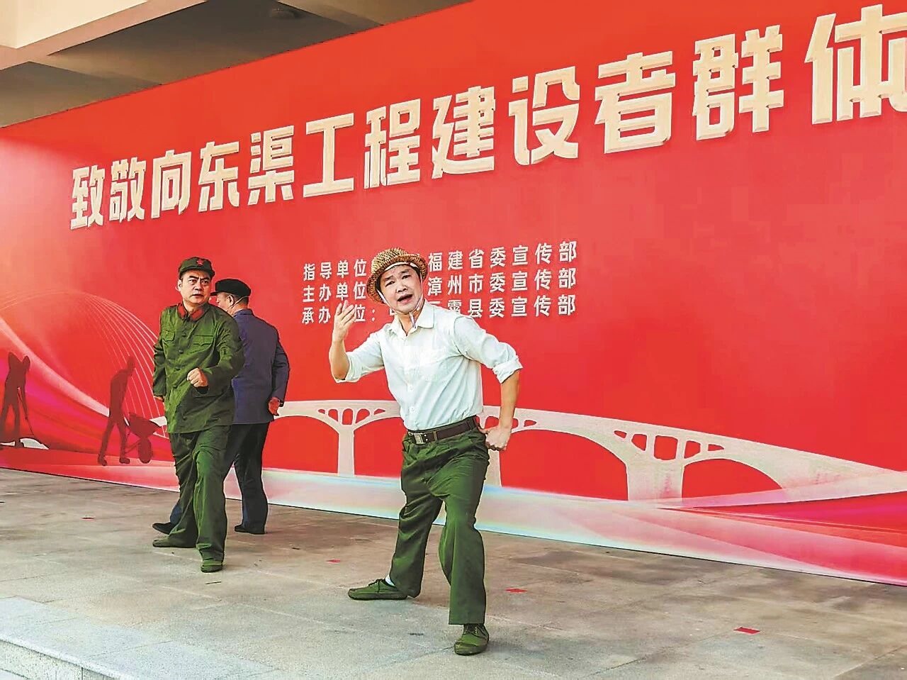 在致敬向东渠工程建设者群体活动中,原创歌曲《向东开渠人》悠扬唱响,情景剧《万众一心筑长渠》激情开幕,共同献礼向东渠破土动工建设55周年。“我们要让更多人知道,这片土地上曾有人不顾一切,把不可能变为可能。”云霄县潮剧传承保护中心主任何继雄介绍,近年来,云霄县潮剧传承保护中心多次走访亲历者、查阅档案,创作了《万众一心筑长渠》《向东开渠人》等多部作品,用潮剧、歌曲、舞蹈、快板等形式讲好向东渠故事。
