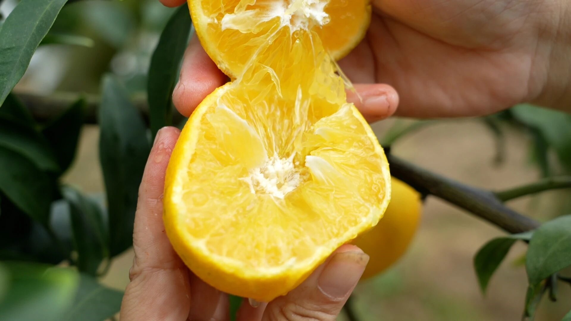 色泽诱人、口感酸甜多汁的“红美人”,成为秋日里不可多得的美味。随手摘下一个“红美人”柑橘,剥开果子,丰盈的果汁便伴着柑橘的清香喷溅出来。