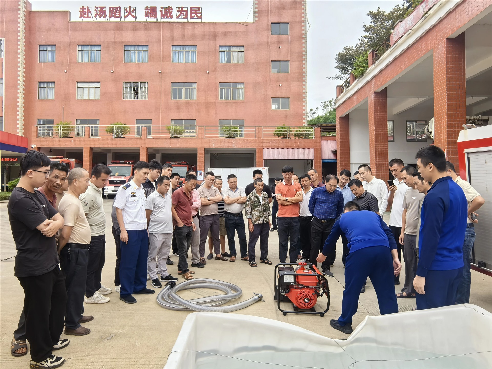 锤炼实战能力,提升应急本领。装备要到位,能力更要跟上。活动还对所有参会人员进行系统的业务技能培训。本次培训的核心内容聚焦于手抬机动消防泵的操作使用。县消防救援大队业务骨干采取“理论+实操”的模式,首先围绕手抬泵的燃油混合比、启动步骤、吸水口连接、水带铺设、水枪与二分水器的协同使用以及常见故障排除,进行了精细化的讲解与示范。随后,各村代表在业务骨干的指导下,亲身体验了从水泵启动、吸水到出水的全过程,确保能真正熟练掌握这套核心装备的操作精髓。