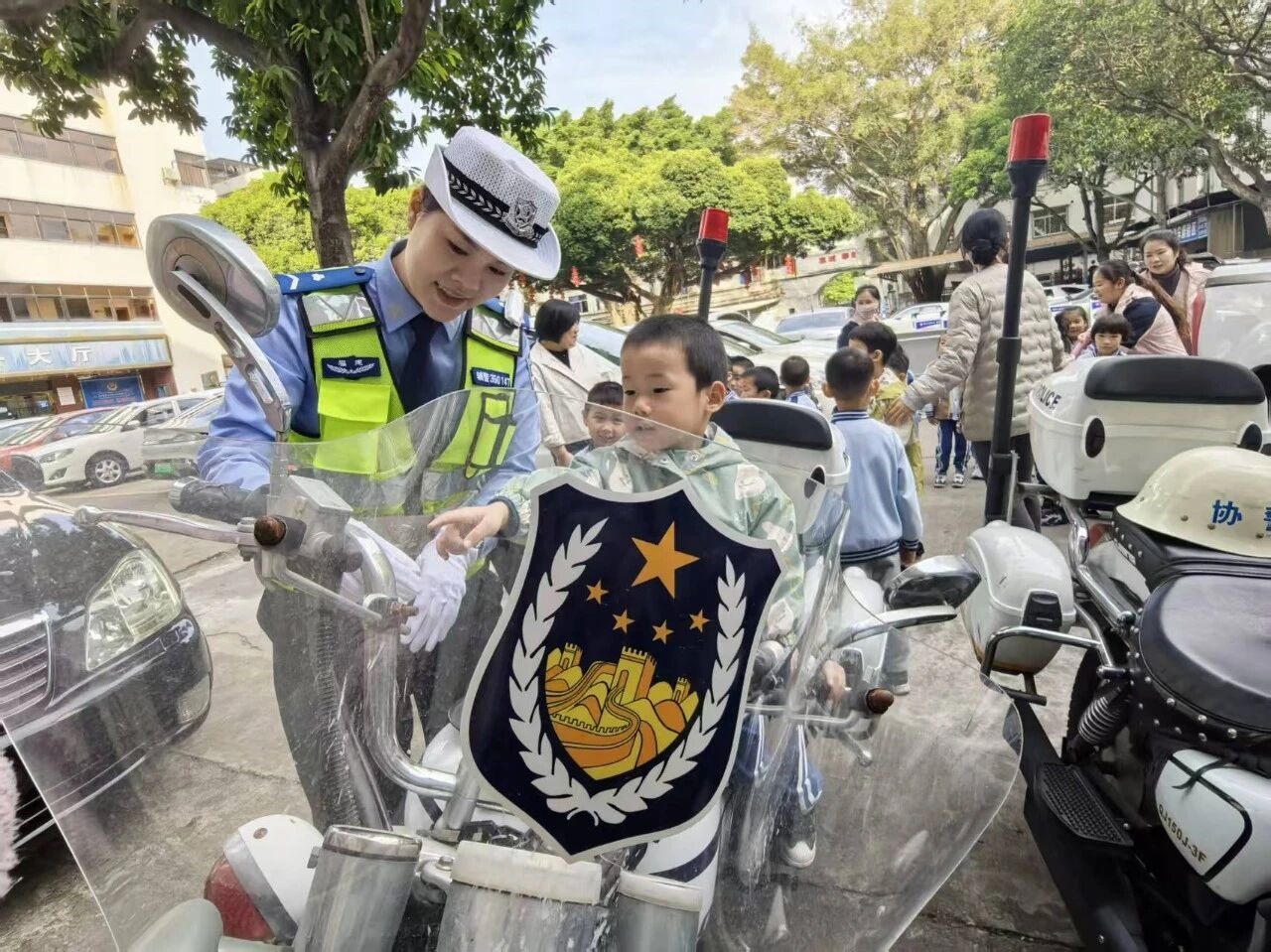 同时,县公安局交管大队还组织开展“萌娃进警营”宣传活动,邀请县机关幼儿园小朋友“零距离”体验交警工作,沉浸式学习交通安全知识。民警结合幼儿认知特点,组织幼儿参观交通指挥中心,观看警用摩托车等警用装备,开展指挥手势操学习和交通现场模拟体验小游戏,全方位了解日常交通出行需要注意事项,并对幼儿家长进行交通安全教育,增强家长的交通安全意识。
