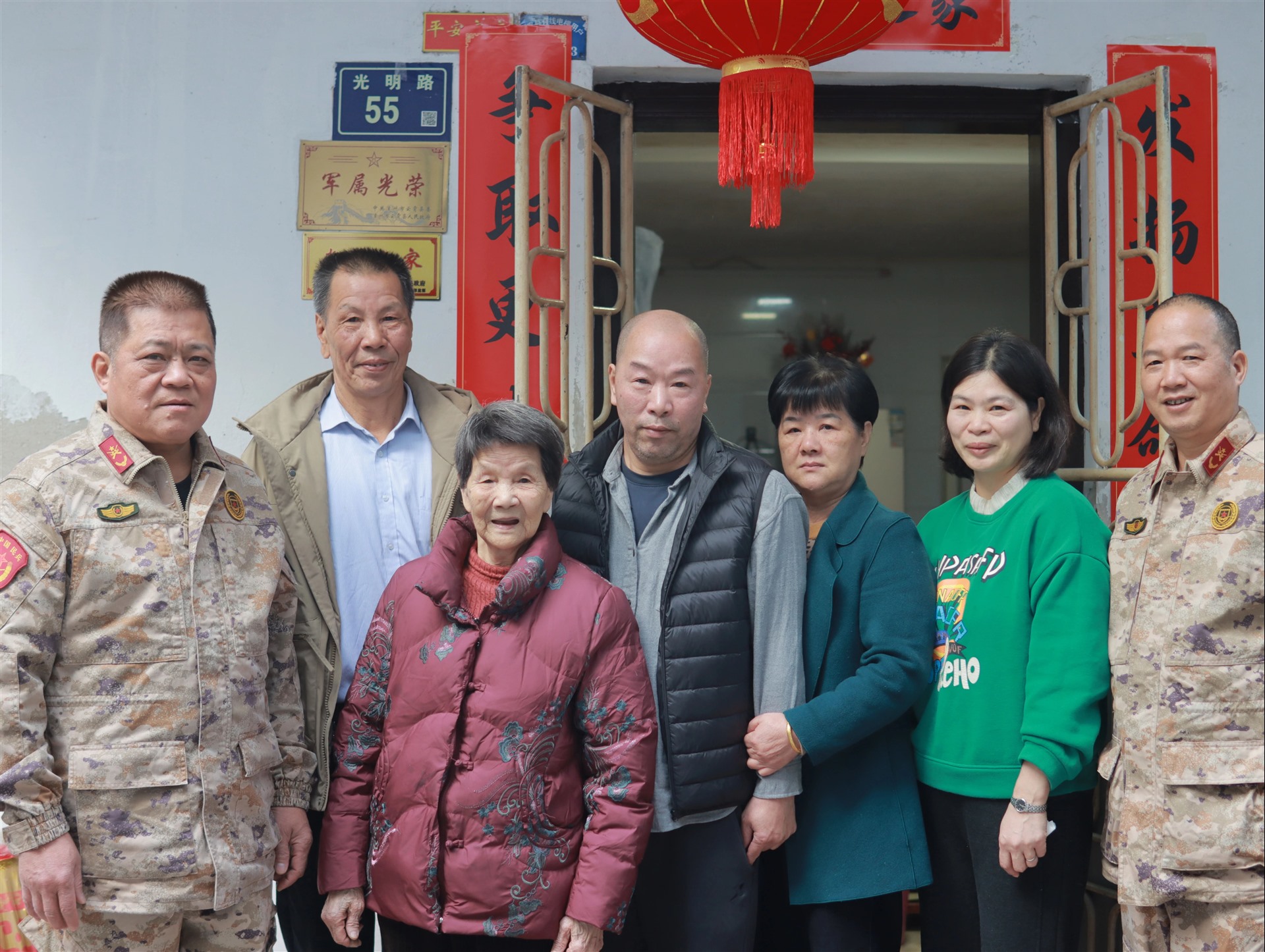 本报讯(朱乔柽 吴泽宇 方向圆)近日,记者探访位于云霄县云陵镇光明路上的一户特殊军人家庭,只见门侧崭新的“光荣之家”和“军属光荣”两块牌匾在阳光下熠熠生辉,门楣上悬挂着“光荣之家”的大红灯笼增添了浓浓的年味,这是县人武部和退役军人事务局不久前送来的,这不仅是牌匾的焕新、喜庆的点缀,更是一份尊崇的延续,它见证的是檀家两代六人参军的从军报国路,更是一个平凡家庭不平凡的奉献。